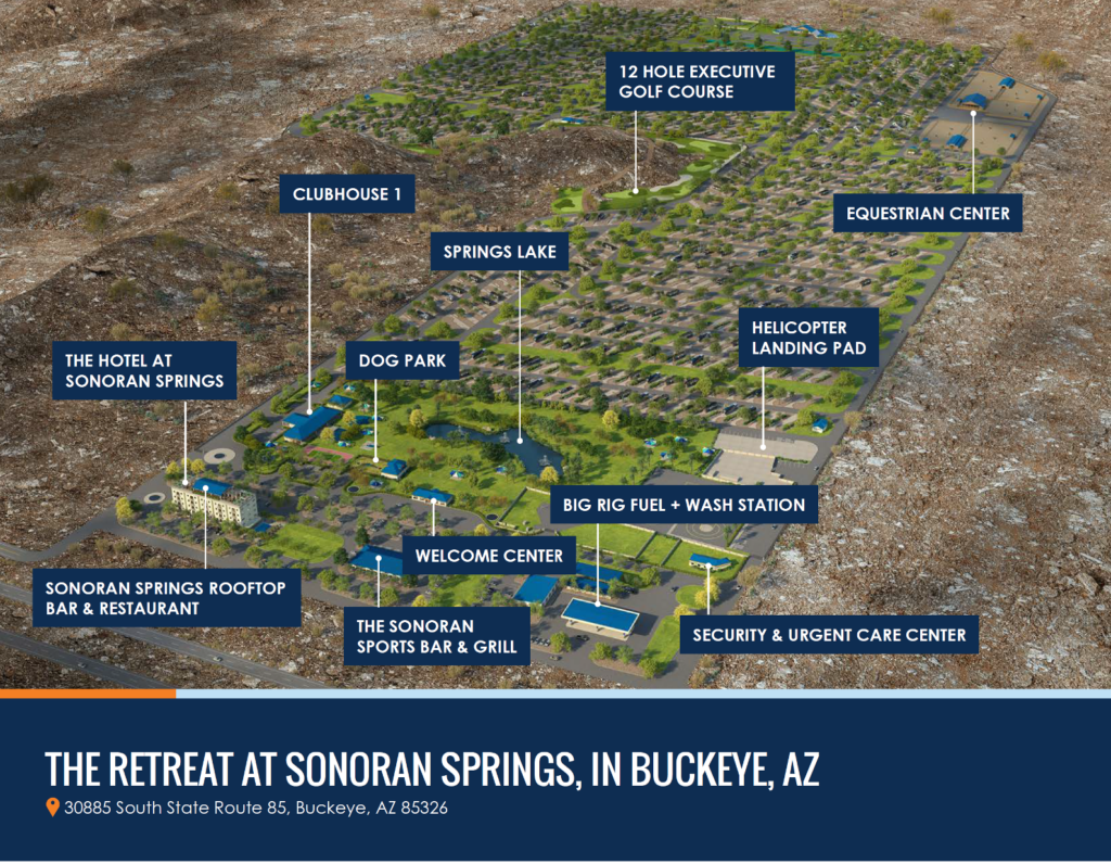1.    800-site Luxury Hybrid RV and Rental Only Tiny Home Resort with large premier sites in Buckeye, AZ featuring: